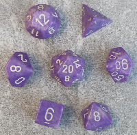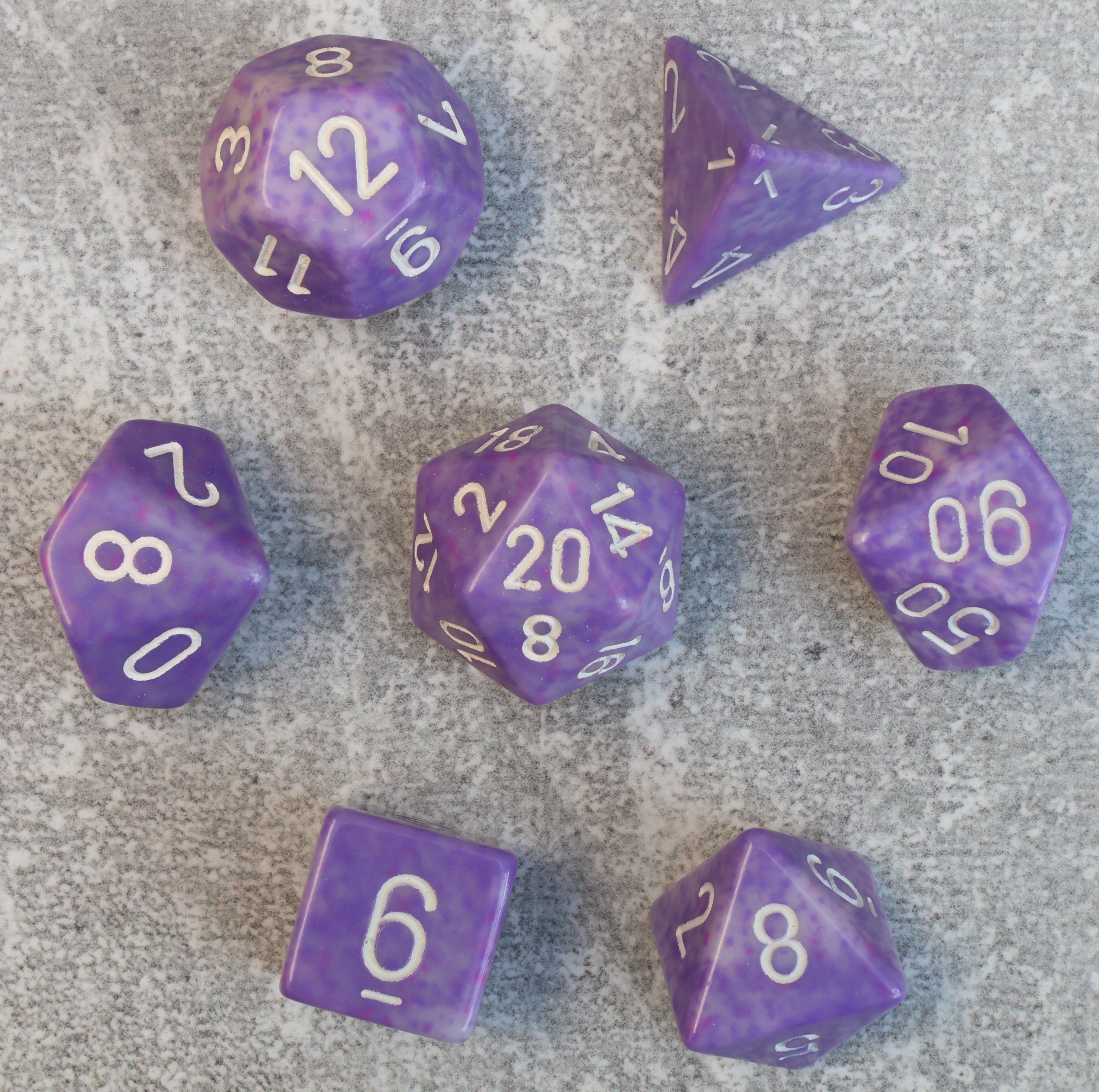 | Francis Speckled Pound o Dice pod5 | milky white purple speckled with black numbers |