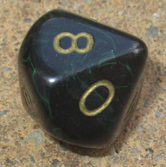 green black swirl with gold pips/numbers